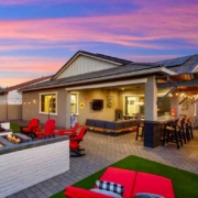 Step into this solar powered home that feels intentionally designed for both everyday comfort and elevated living. This contemporary residence delivers a wide-open layout that feels expansive without sacrificing warmth. 12 foot ceilings crown the main living spaces, flooding the home with natural light and creating a striking sense of volume. Thoughtfully curated with more than $300k in enhancements, this home far exceeds it’s competition. The heart of the home is the stunning Great Room, where living, dining, and kitchen spaces flow effortlessly together. The chef’s kitchen anchors the space with sleek quartz surfaces, premium cabinetry, and professional-grade stainless appliances. Step out back to your very own resort featuring an outdoor kitchen, built-in gas fire pit, & putting green.