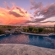 Experience refined desert luxury in this stunning 2,610 sq ft Aurora floor plan, perfectly positioned on a rare 10,560 sq ft oversized pie-shaped lot backing to a serene desert wash with a coveted north-facing backyard. Tucked away in a private cul-de-sac, the resort-style yard impresses with an extended travertine patio, pool, spa, built-in BBQ island, gas fire pit, and an intimate courtyard featuring water and fire elements beneath a pergola. Inside, enjoy elegant tile throughout (no carpet) and a gourmet kitchen showcasing double granite islands, slab backsplash, and raised-panel designer cabinetry with pullout drawers. Excellent curb appeal with paver driveway and walkway. Solar powered lease has low monthly payments but could get paid off at closing by Seller with strong offer!