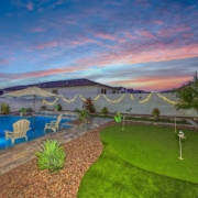 Rarely available newer home with Private Pool in Verrado built by America’s Favorite Home Builder, Toll Brothers! Fall in love with this resort style backyard with Pool, Built-in BBQ, Putting Green, Synthetic Grass Bocce Court, and Large Covered Patio with Travertine Pavers and Electronic Sun Shades! Step inside of this gorgeous home that features ”wood look” flooring throughout and custom window treatments and fans. Gourmet Kitchen features quartz countertops, white shaker cabinetry, full tile backsplash, farmhouse sink, and stainless appliances including gas range! Kitchen is open to the spacious Great Room that features a wall of glass that disappears, brining the outside in! 3rd Bedroom is currently open (shown as Den) but Seller can add doors if Buyer wants with accepted offer.